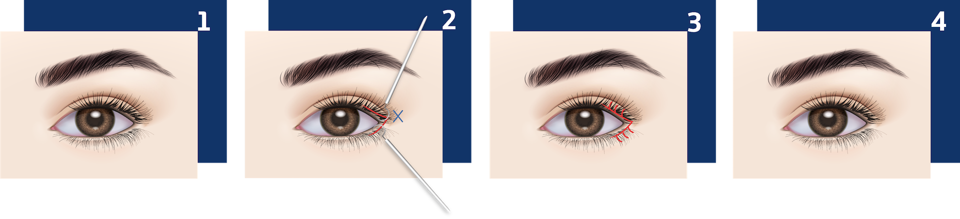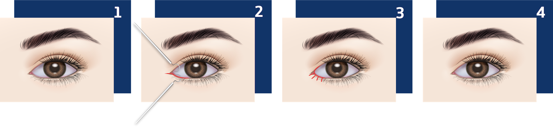 - 불필요한 조직을 제거하고, 흉터가 보이지 않도록 눈 안쪽을 봉합합니다.