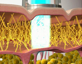 진피층에 고주파를 조사하여, 피부 표면의 온도를 43도까지 서서히 끌어올리고 이 심부열이 콜라겐과 엘라스틴 생성을 촉진하며, 피부 탄력을 개선시키고 타이트닝 효과를 줍니다. 또한 얼굴 전체의 혈액 순환과 림프 순환의 개선으로 안색이 좋아지는 효과도 있습니다.