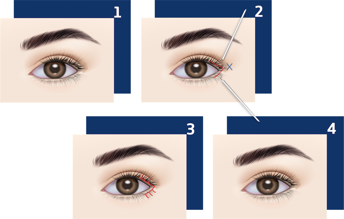 - 흉터가 보이지 않게 눈 안쪽으로 봉합합니다.