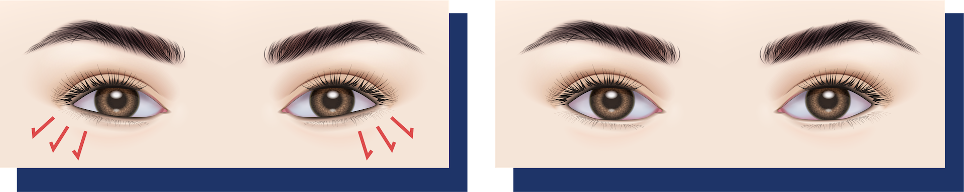 아래 눈꺼풀이 눈동자를 많이 덮고 올라가 있는 경우, 눈매가 답답하고 사나워 보이는 인상을 주게 됩니다. 흉터 없는 결막절개 밑트임 수술을 통해 부드럽고 선한 눈매를 얻을 수 있습니다.