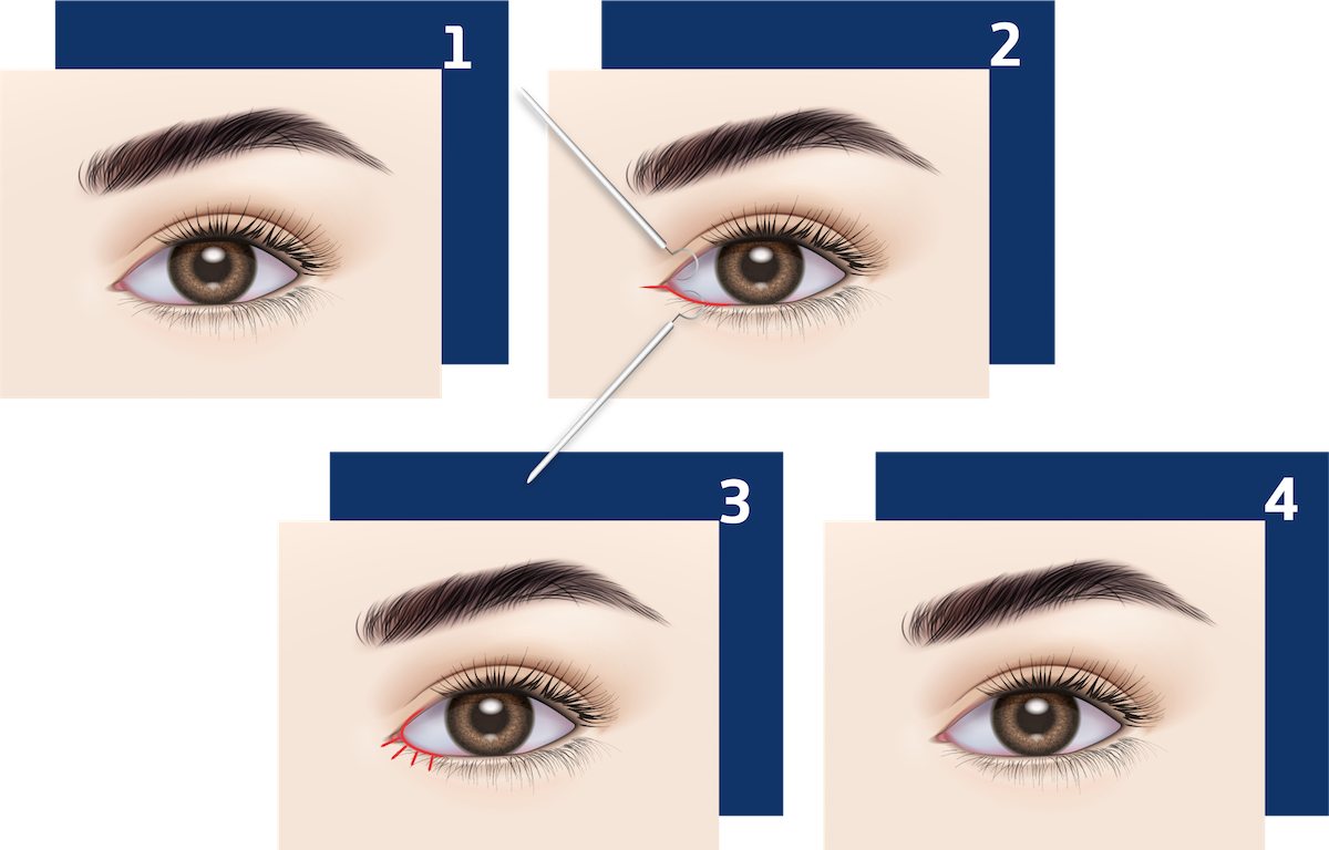 - 불필요한 조직을 제거하고, 흉터가 보이지 않도록 눈 안쪽을 봉합합니다.